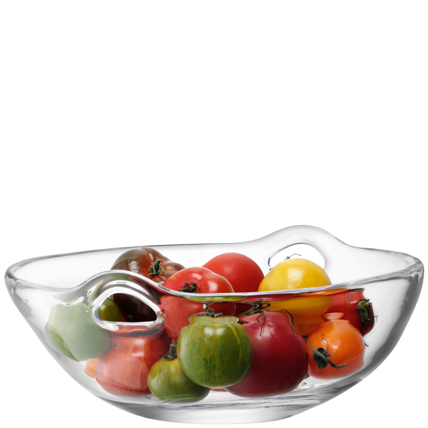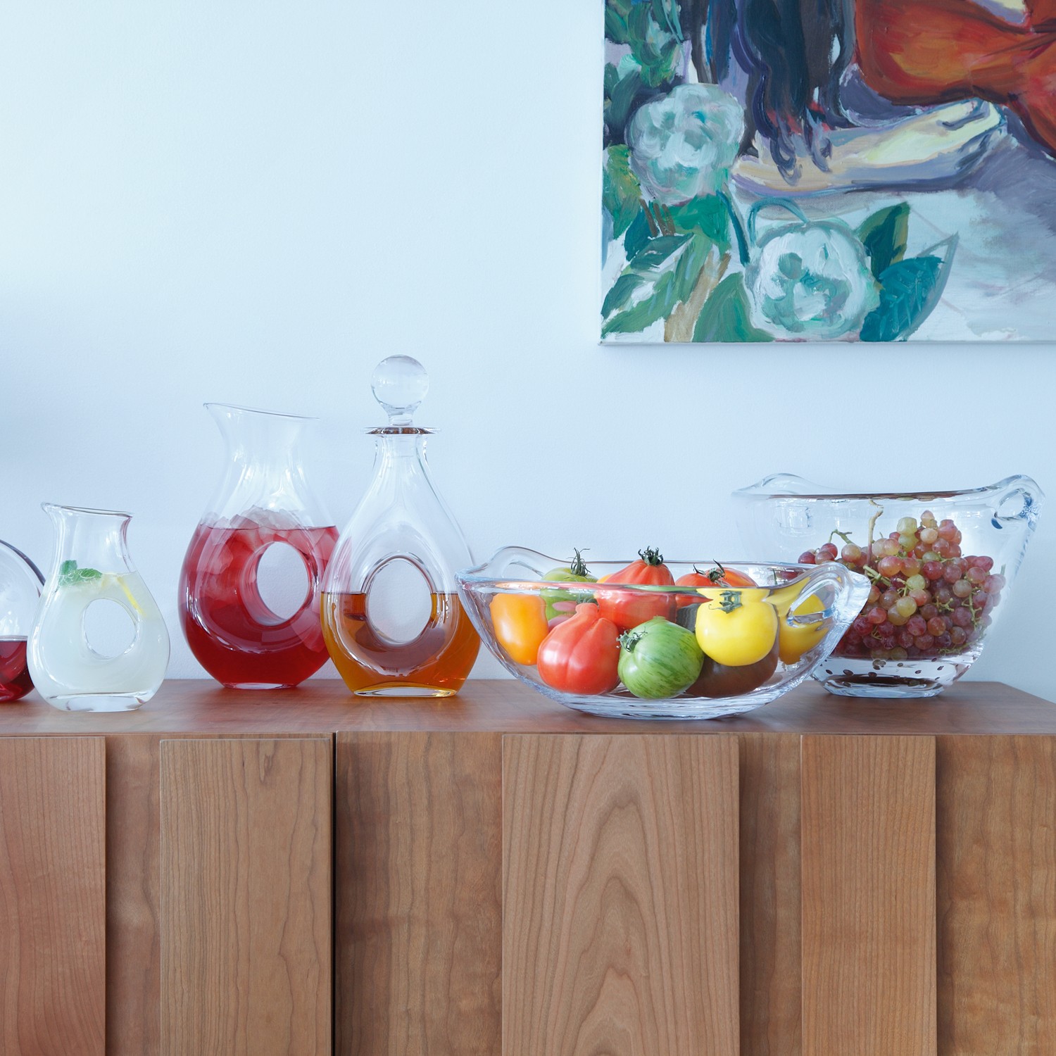 Mouthblown from a single piece of glass, this bowl’s smooth curves and scissor-cut rim complement its signature handles – which are created by skilled artisans who expertly pierce the glass while still hot.