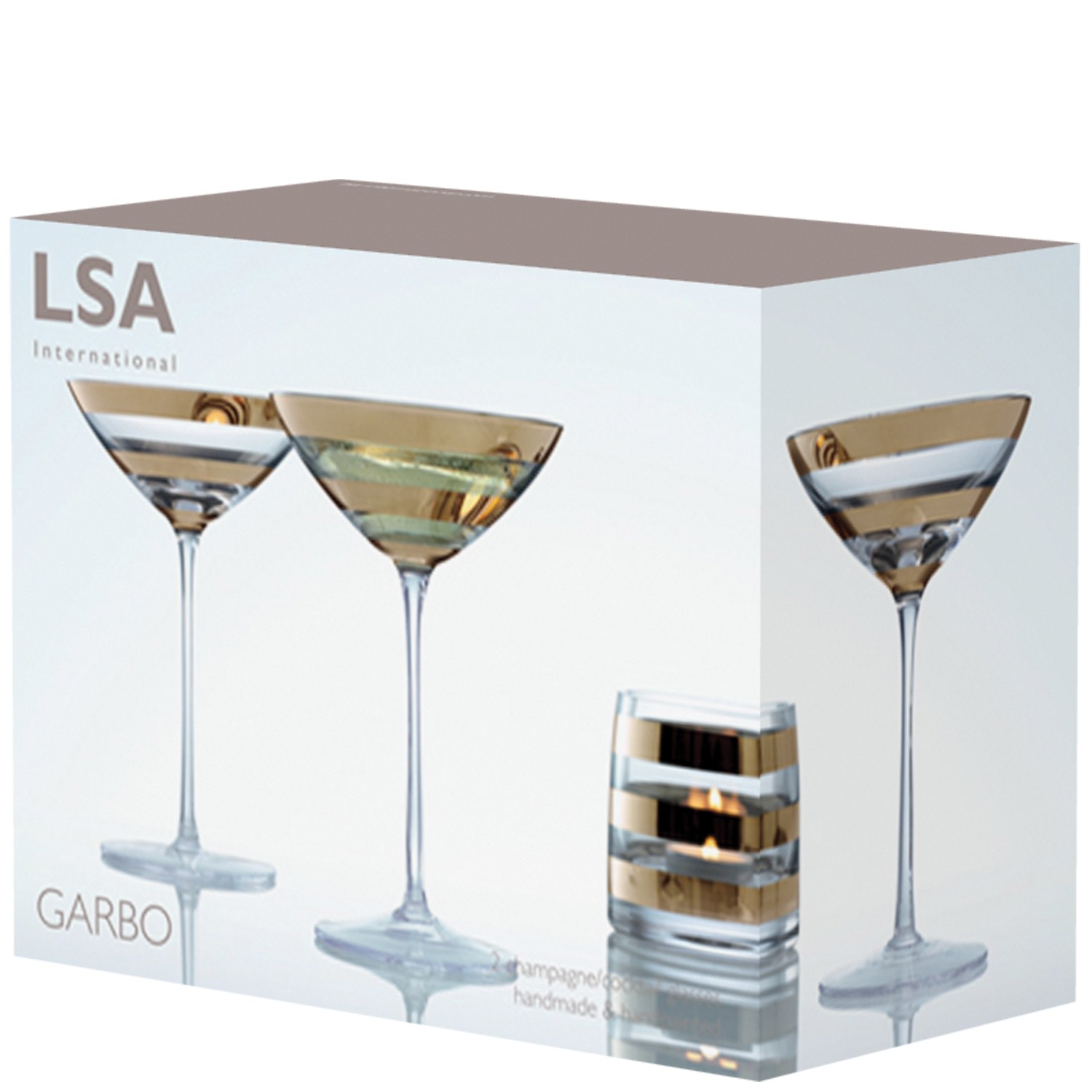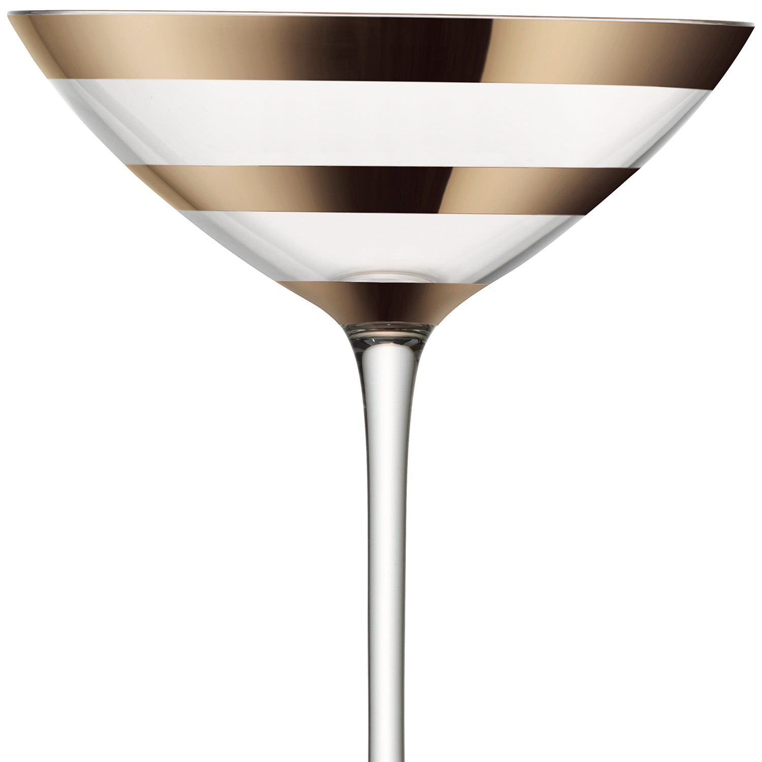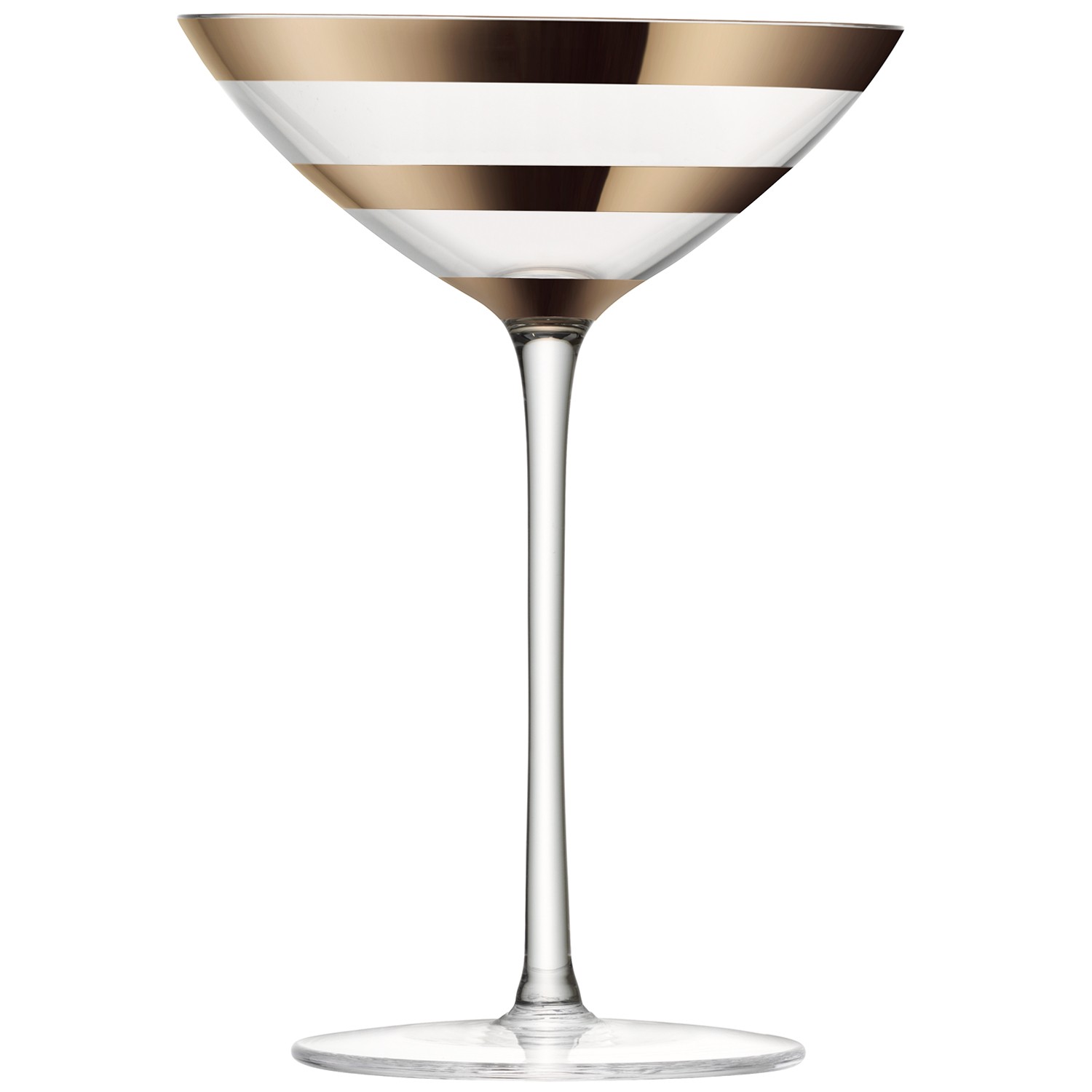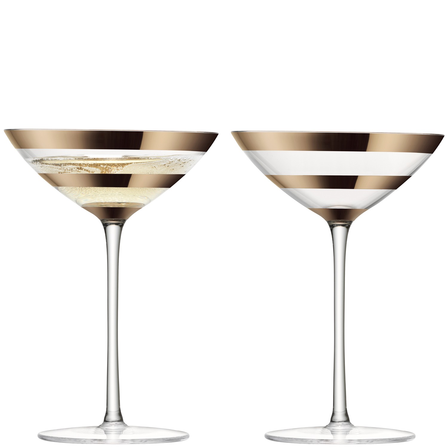 Handmade by skilled artisans, these champagne/cocktail glasses are individually mouthblown before luxuriously thick bands of blush gold are handpainted onto each piece. Softer in tone than gold, this original colour and style complements natural interiors as well as bolder schemes. A new metallic, straight from the catwalk. Presented in gift packaging.