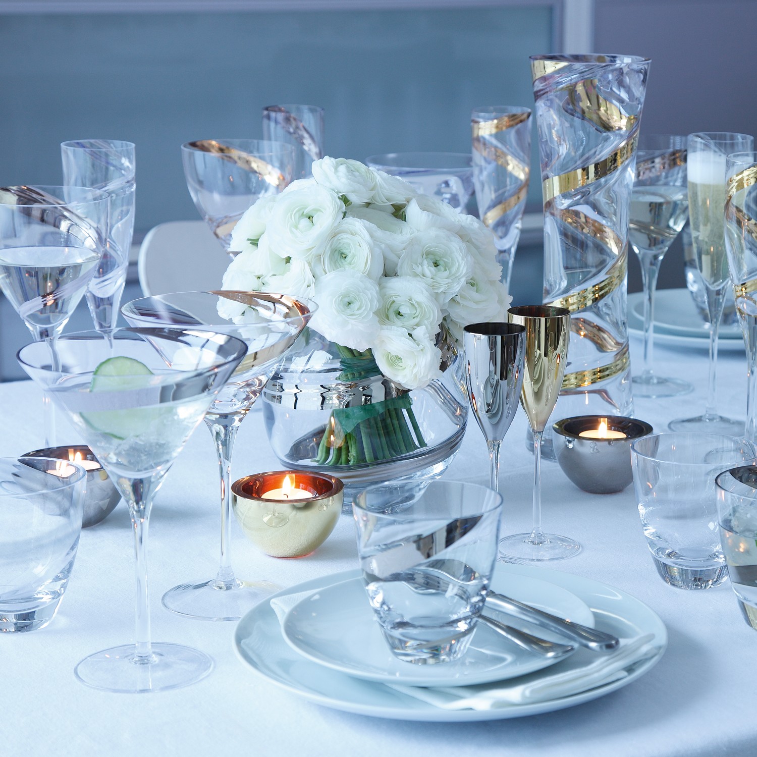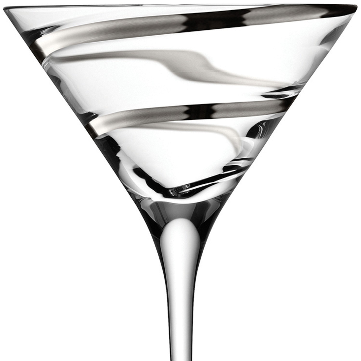 Perfect for stylish cocktails or martinis, the handpainted platinum spiral sweeps around the glass adding movement and fluidity. Stylishly gift-boxed in pairs.
