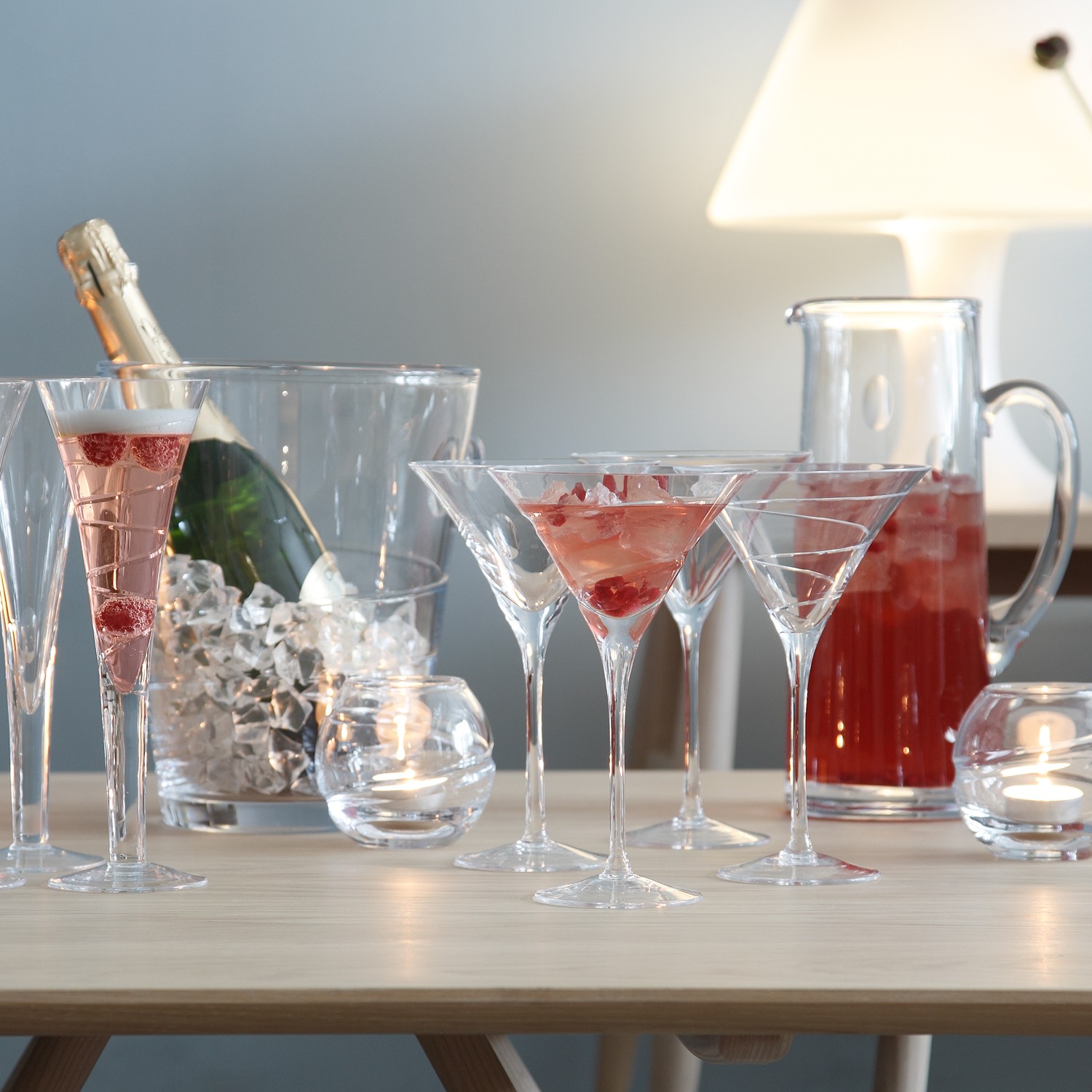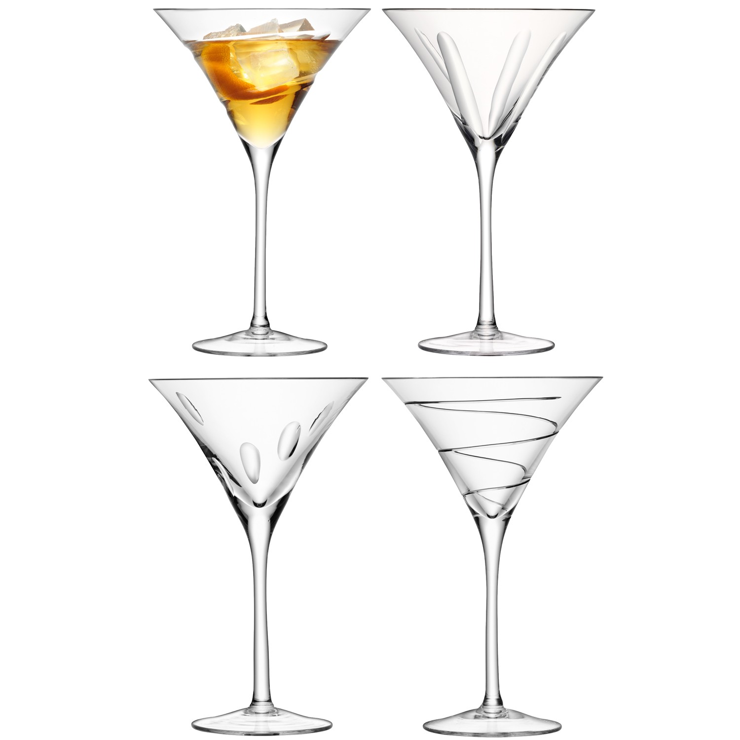 Four assorted hand-cut decorations add an individual touch to these exquisite gift-boxed mouthblown cocktail glasses.