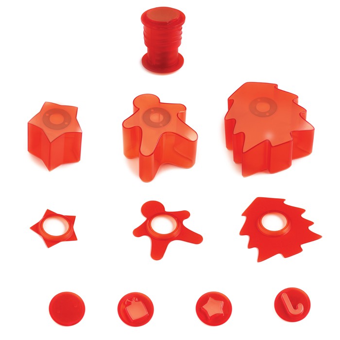 11 components by kit: 1 magnetic core, 4 stamp patterns and cutters/stackers.