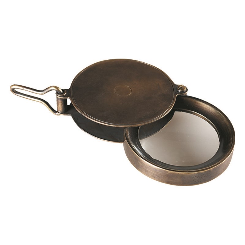 Once an antique dealer, I possessed a remarkable magnifier whose ivory handle was carved with vines and leaves. It is now on display in a French decorative arts museum. But my earliest glass was a utilitarian Boy Scout one of sturdy brass. I studied insects and the skin of my hand. However, after turning my dads newspaper into charcoal, it was confiscated, despite my protestation that the glass was an essential tool of scientific discovery. Our Discovery Glass allows detailed examination of maps, coins, and other wonders.