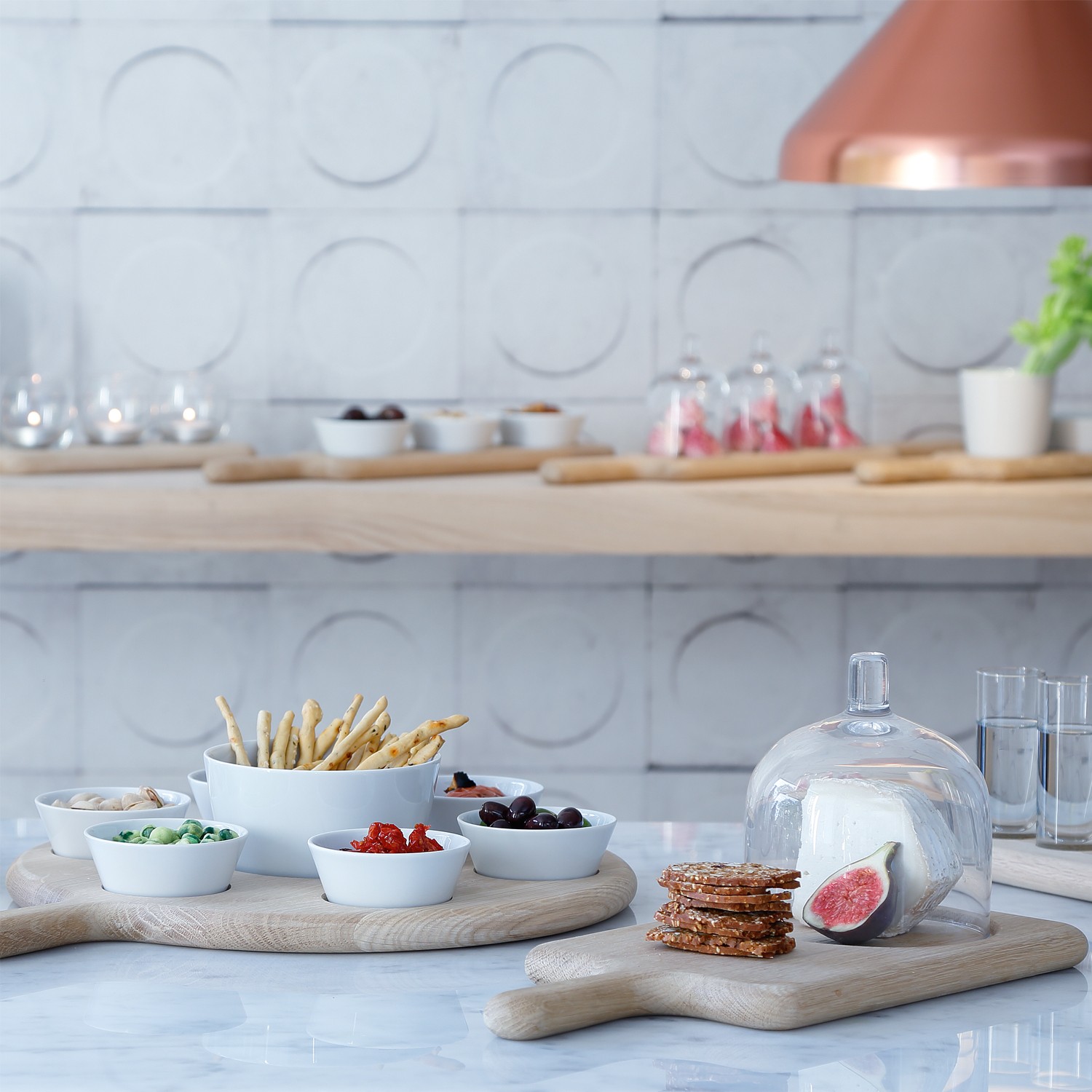 The Paddle Dome is designed for serving cheeseboards for one or two at the dinner table, drinks parties or intimate gatherings. The high-quality mouthblown glass dome nestles in the hand-finished natural oak board for contemporary presentation throughout the year. Presented in photographic packaging.