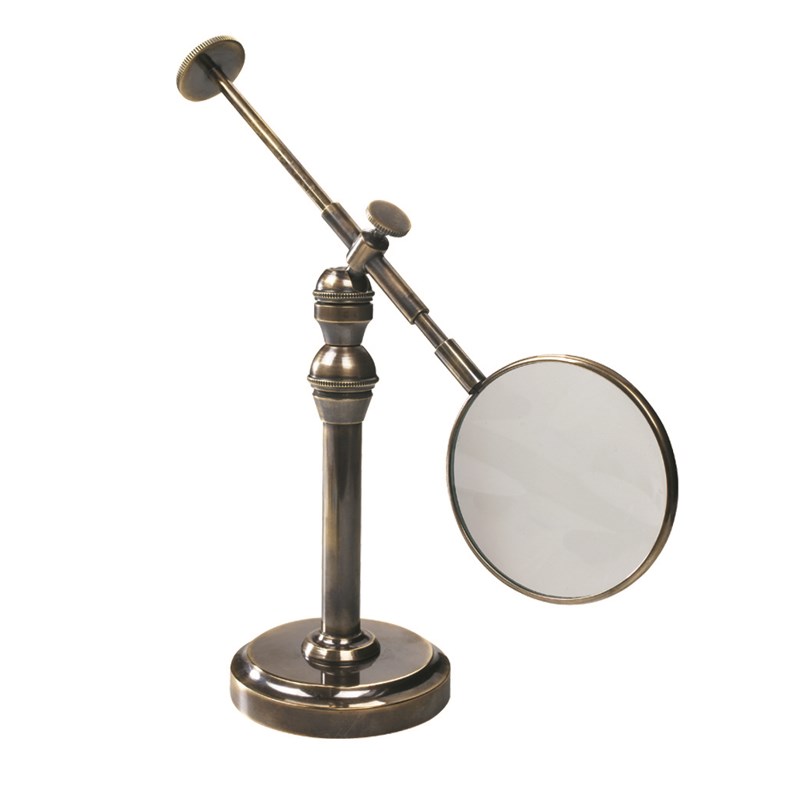 Conversation has had its prescribed etiquette. During the late Victorian era and into the Belle Époque ones monocle served to intimidate and disadvantage. A houseguest who overstayed his welcome an unwelcome suitor to a favorite daughter? Now a tool of study and fun, be it to study the lines on your palm, a picture, fingerprints, small print? A gift with excellent provenance, an accessory that delivers. The magnifying glass telescopes up and down. It angles by adjusting a clever ball-joint. Solid brass with duotone bronze finish, this is a must-have for any desk