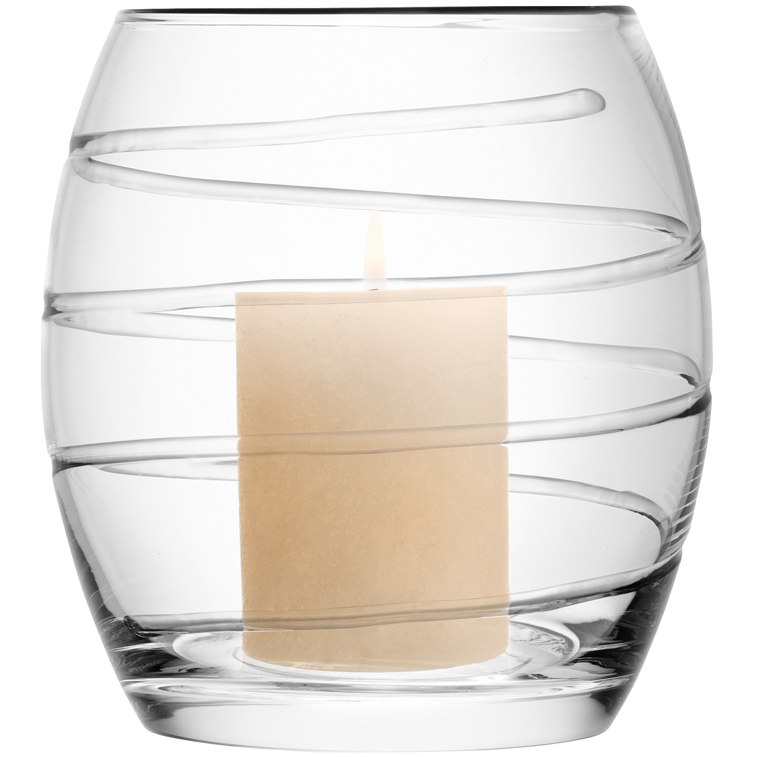 This versatile piece, mouthblown and encircled with a hand-cut spiral, can be used either as a storm lantern or vase. Gift-boxed and presented with its corresponding candle.
