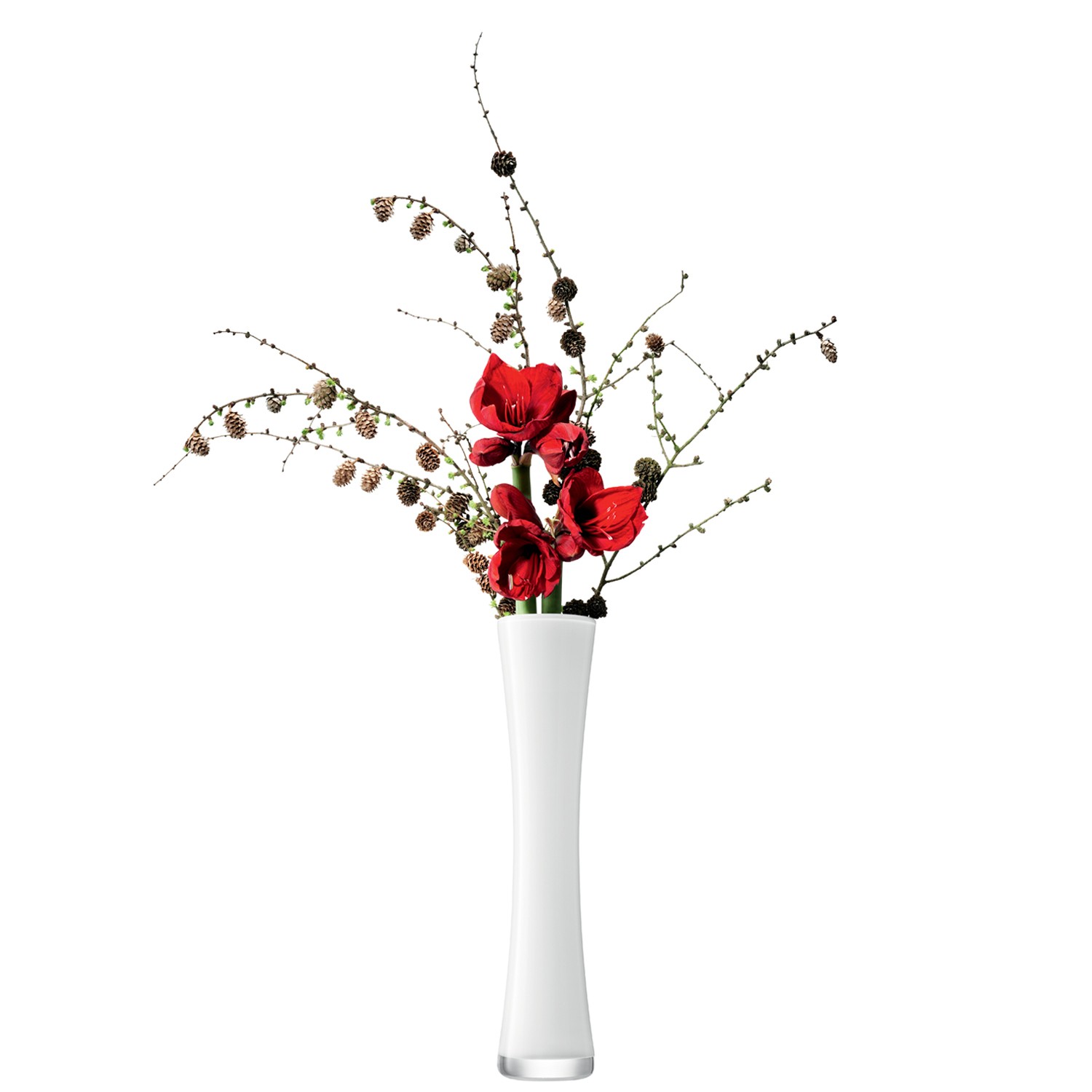 Handmade and mouthblown from a single piece of glass, this tall white vase creates slim and elegant displays. The opaque white glass provides an effective backdrop for white lilies or bright, bold flowers in a rainbow of colours. Presented in stylish gift-boxing.