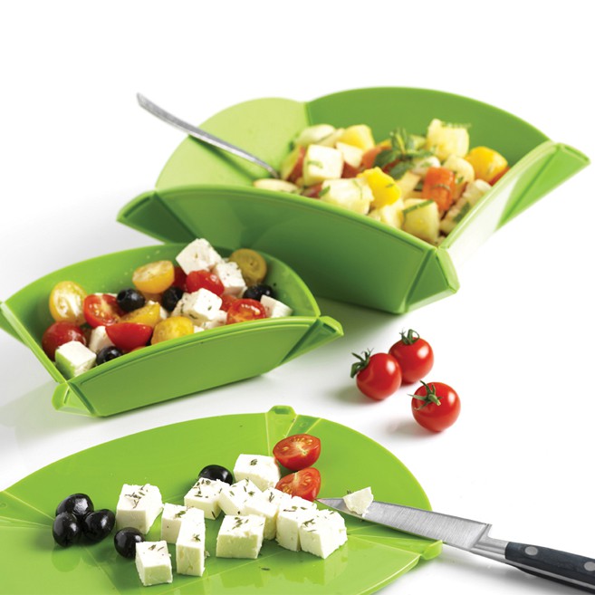 Unfolded, the bowls turn back into boards to take up minimal cupboard space