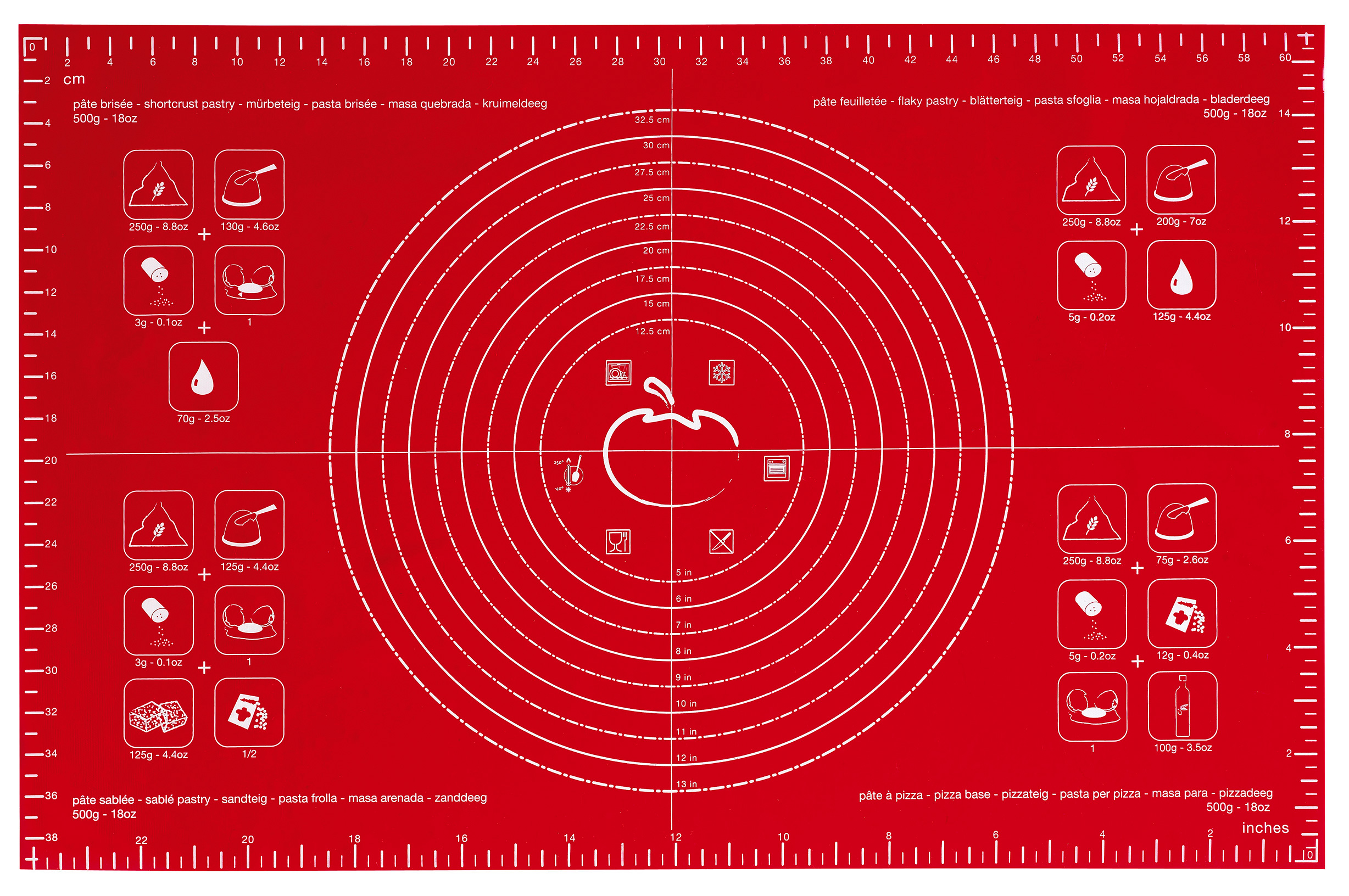 Flexible, non-stick baking mat features both measuring guides and recipes.