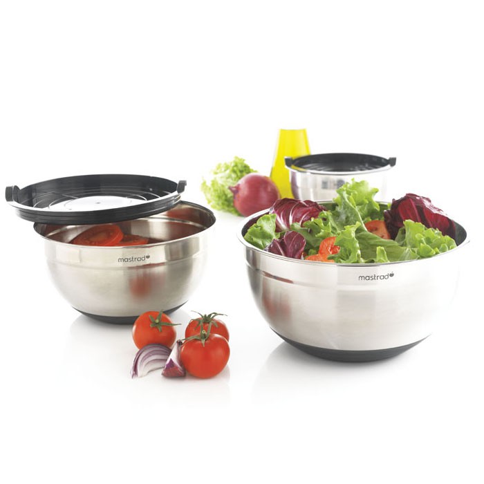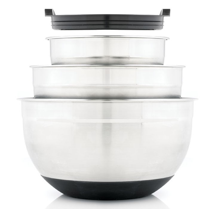 S/3 STAINLESS BOWLS WITH LIDS AND NON SLIP BASE