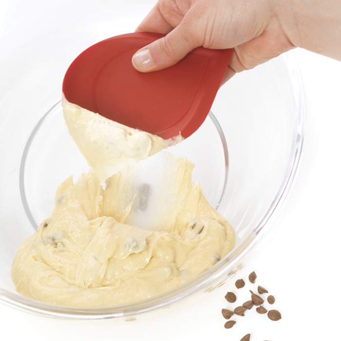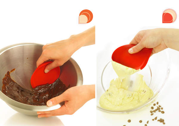 O mix and scrape out batter easily-even from the contours of a bowl !