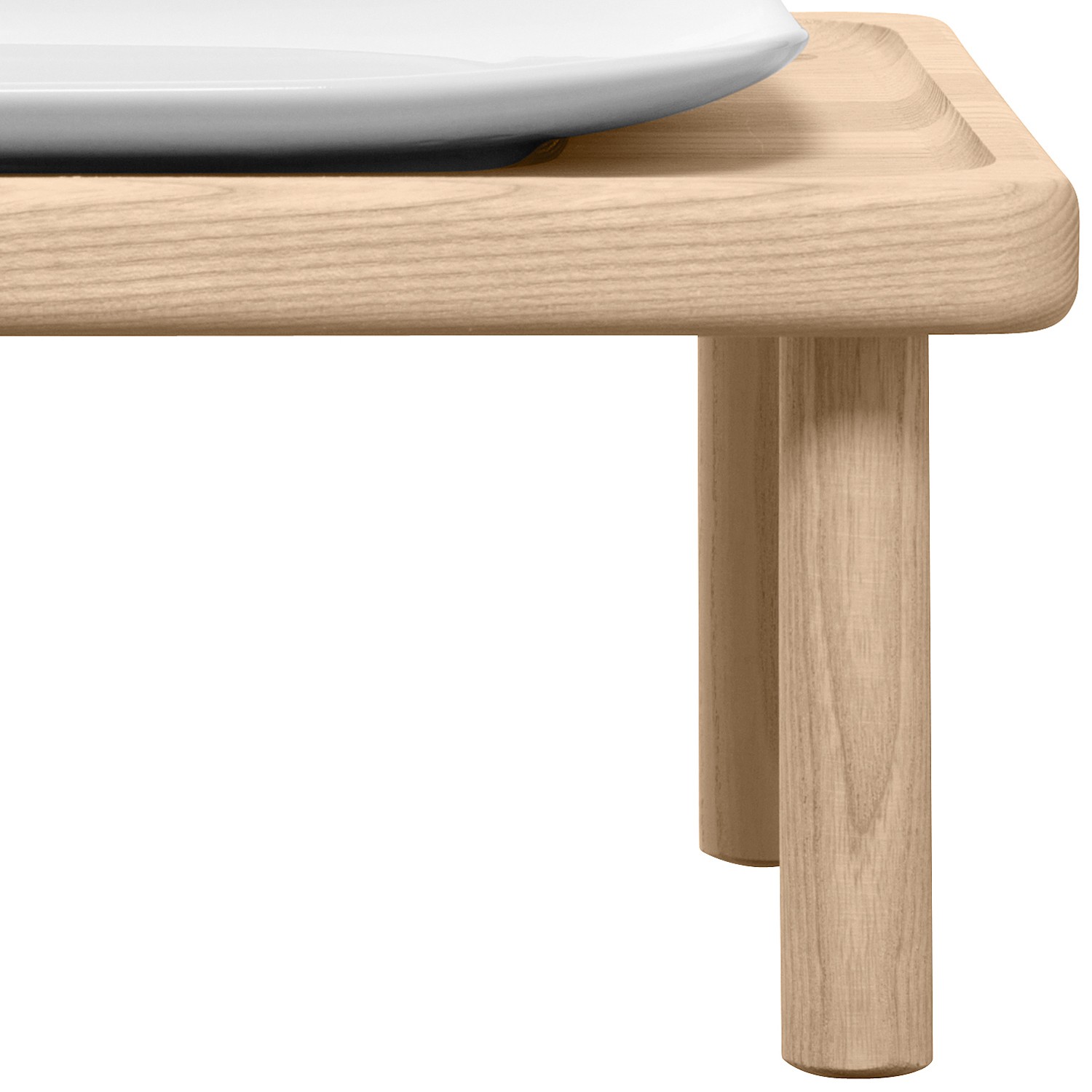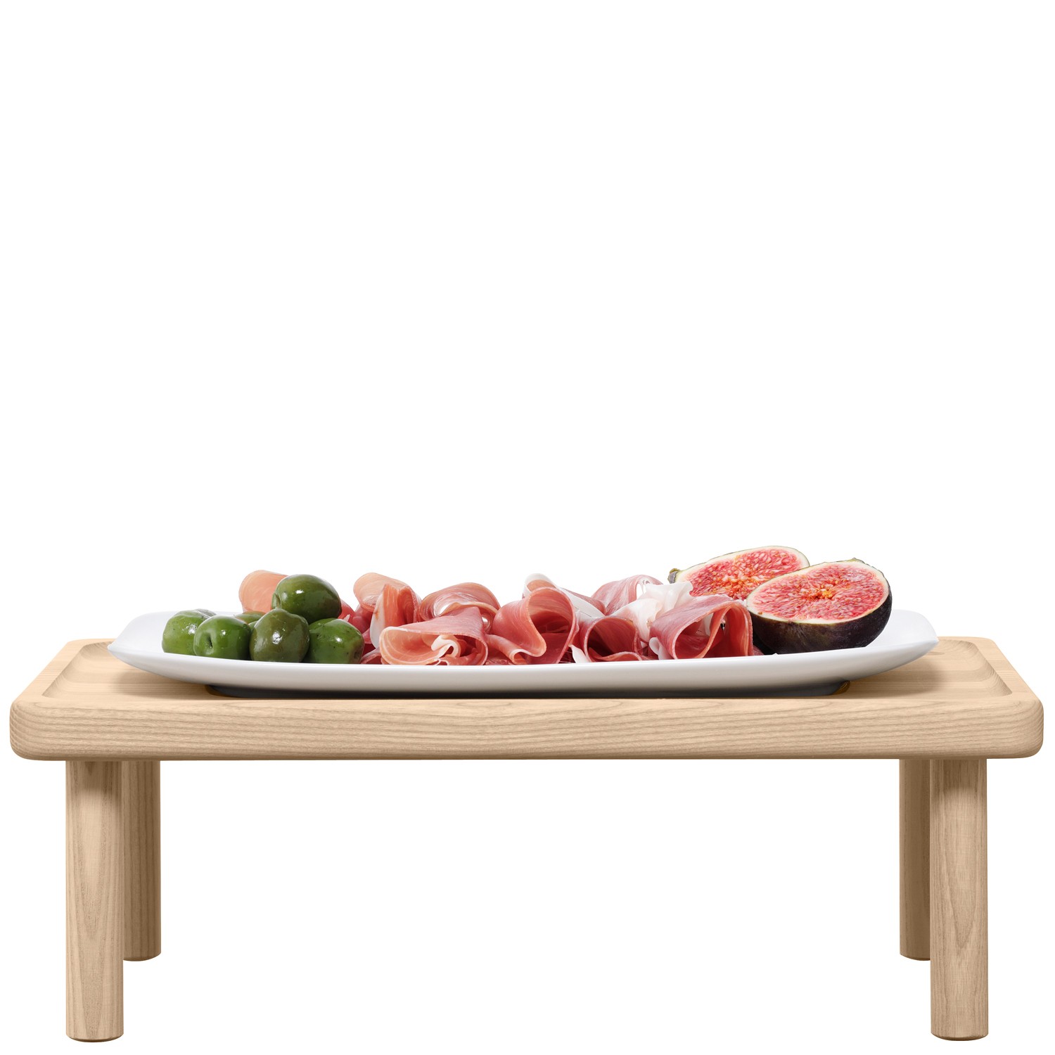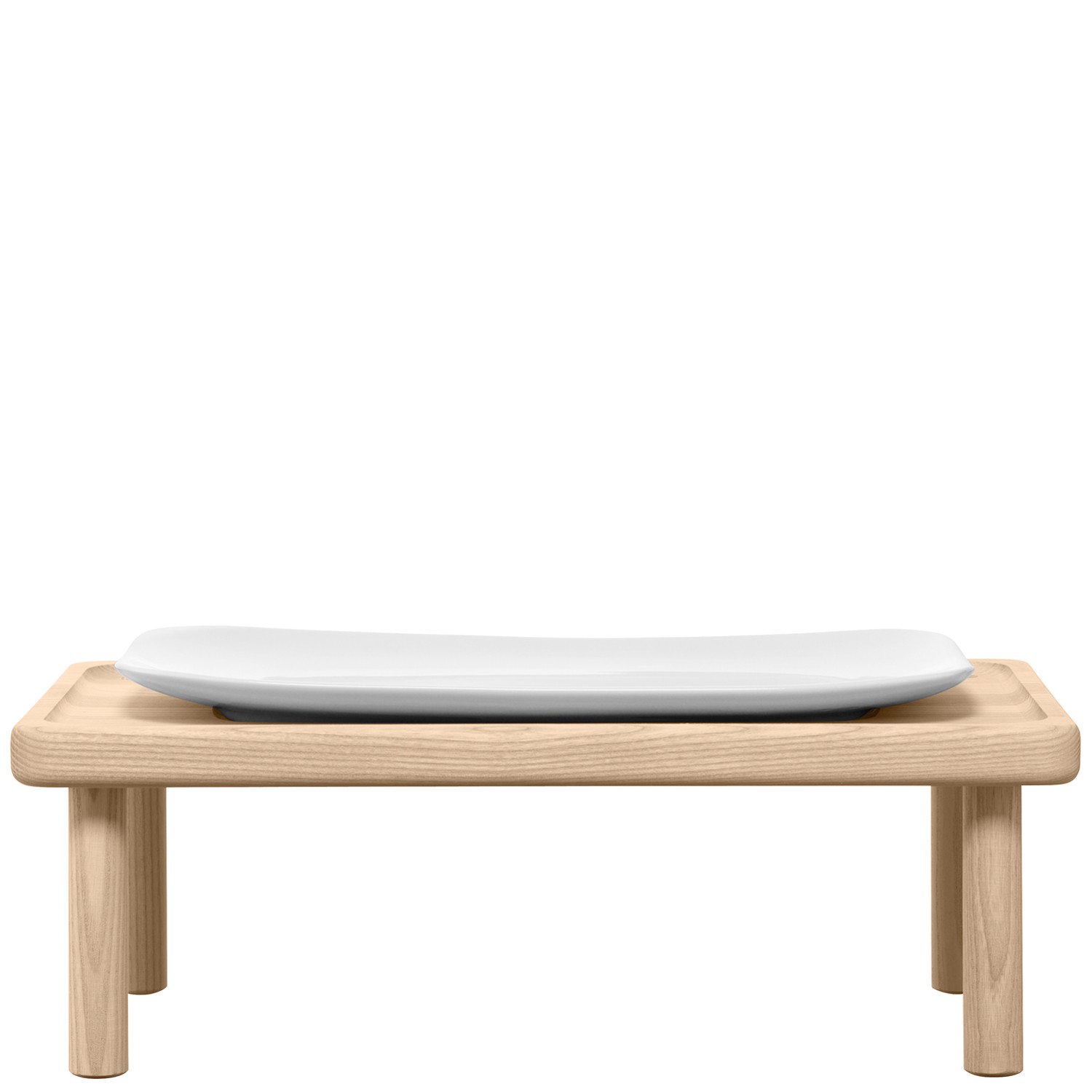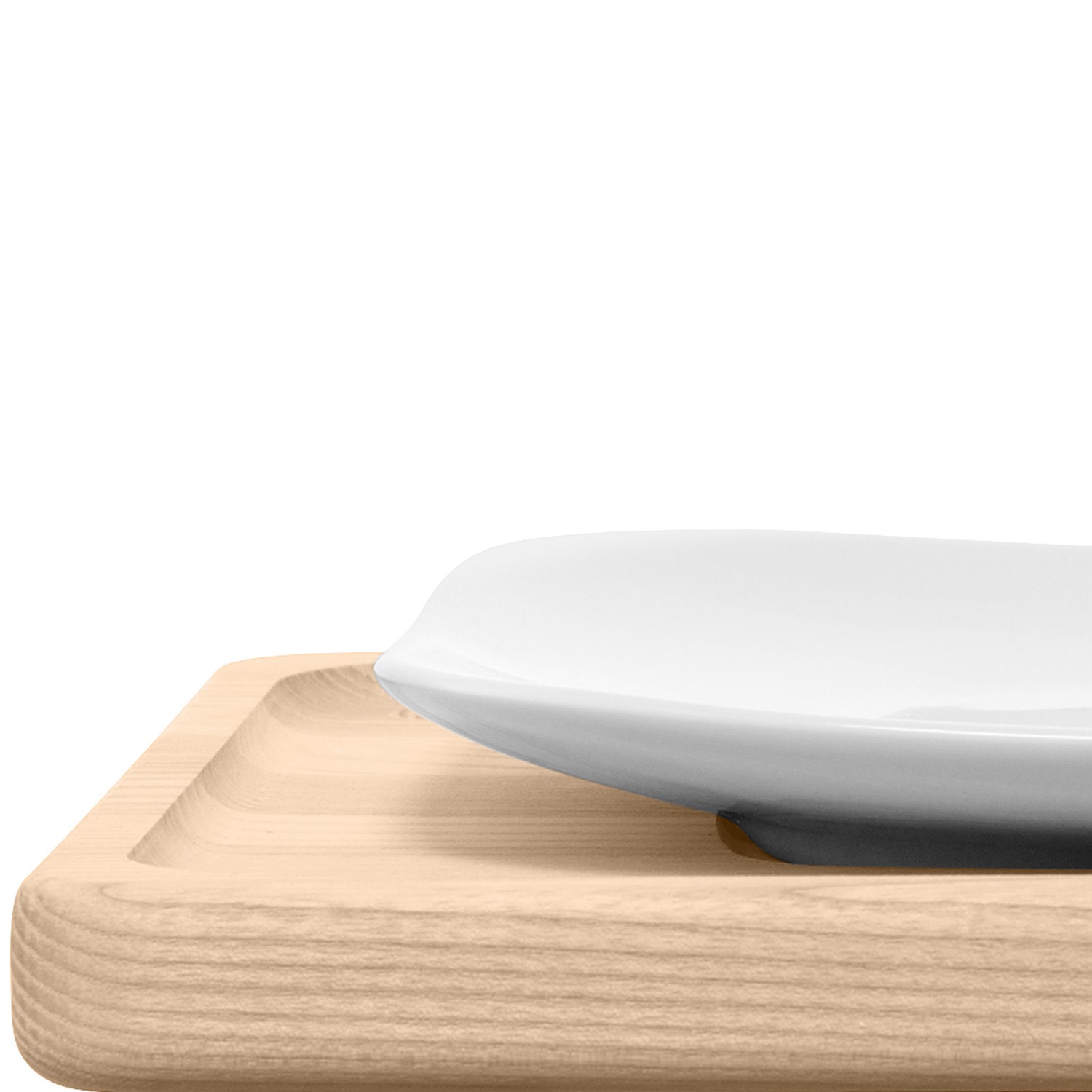 The Stilt Serving Platter & Ash Stand is an original and stackable serving piece suitable for presenting canapés, antipasti or sushi and sashimi. A porcelain plate fits on a wooden stand with turned legs made from FSC certified natural ash. Combine with the Stilt Trio Bowl Set & Ash Stand or the Stilt Bread & Oil Serving Stand to build your own stackable serving set. gift boxed in photographic packaging.