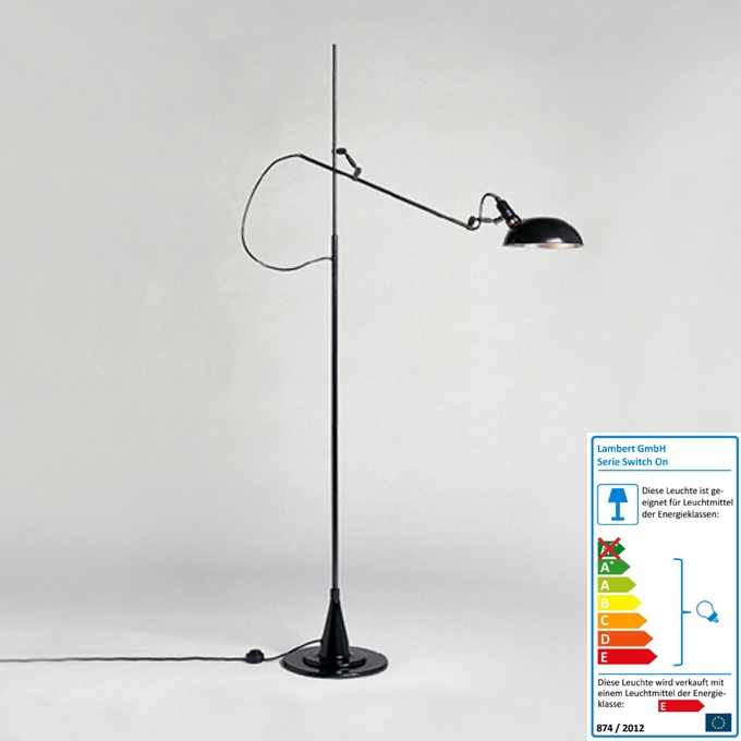 H 136 cm – 225 cm, Fuß D 28 cm, Reflektor D 21 cm,