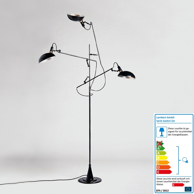 H 136 cm – 225 cm, Fuß D 28 cm, Reflektor D 21 cm,