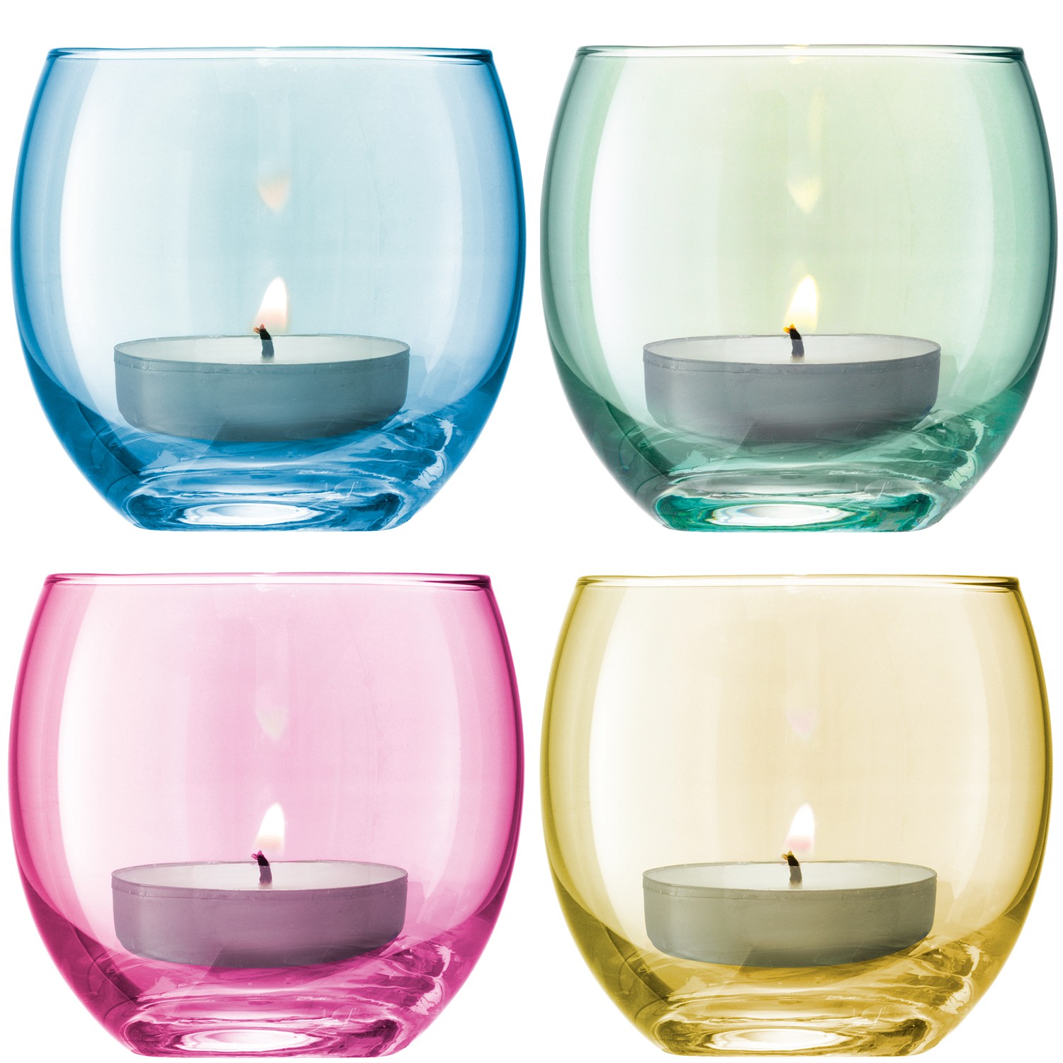 Soft, flickering candlelight creates a warm glow illuminating the delicate hand-applied pearl lustre of these vintage-inspired tealight holders. Gift-boxed.