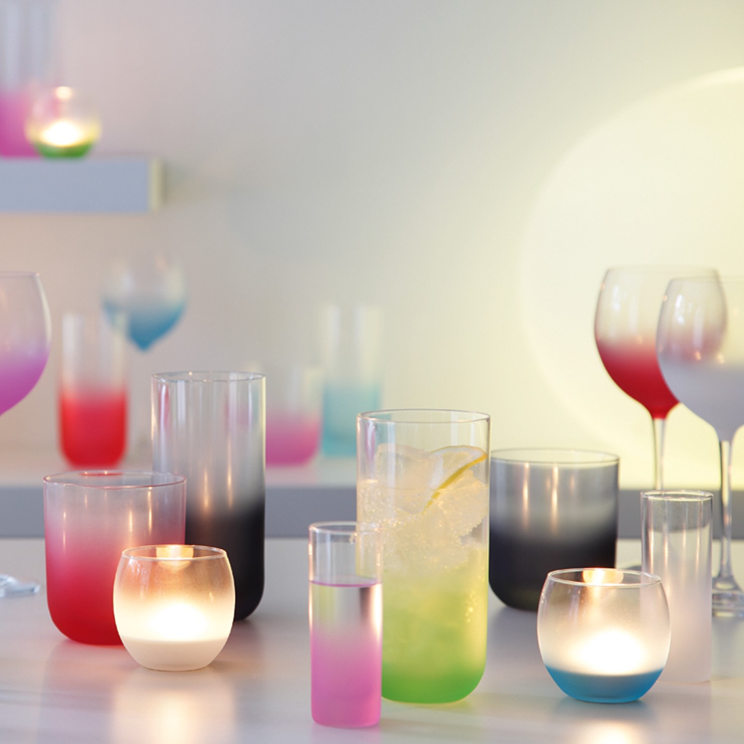 This set of four tumblers features a hazy diffusion of matte colour which is applied by hand, complementing their contemporary, modern design. Gift-boxed in a set of four.