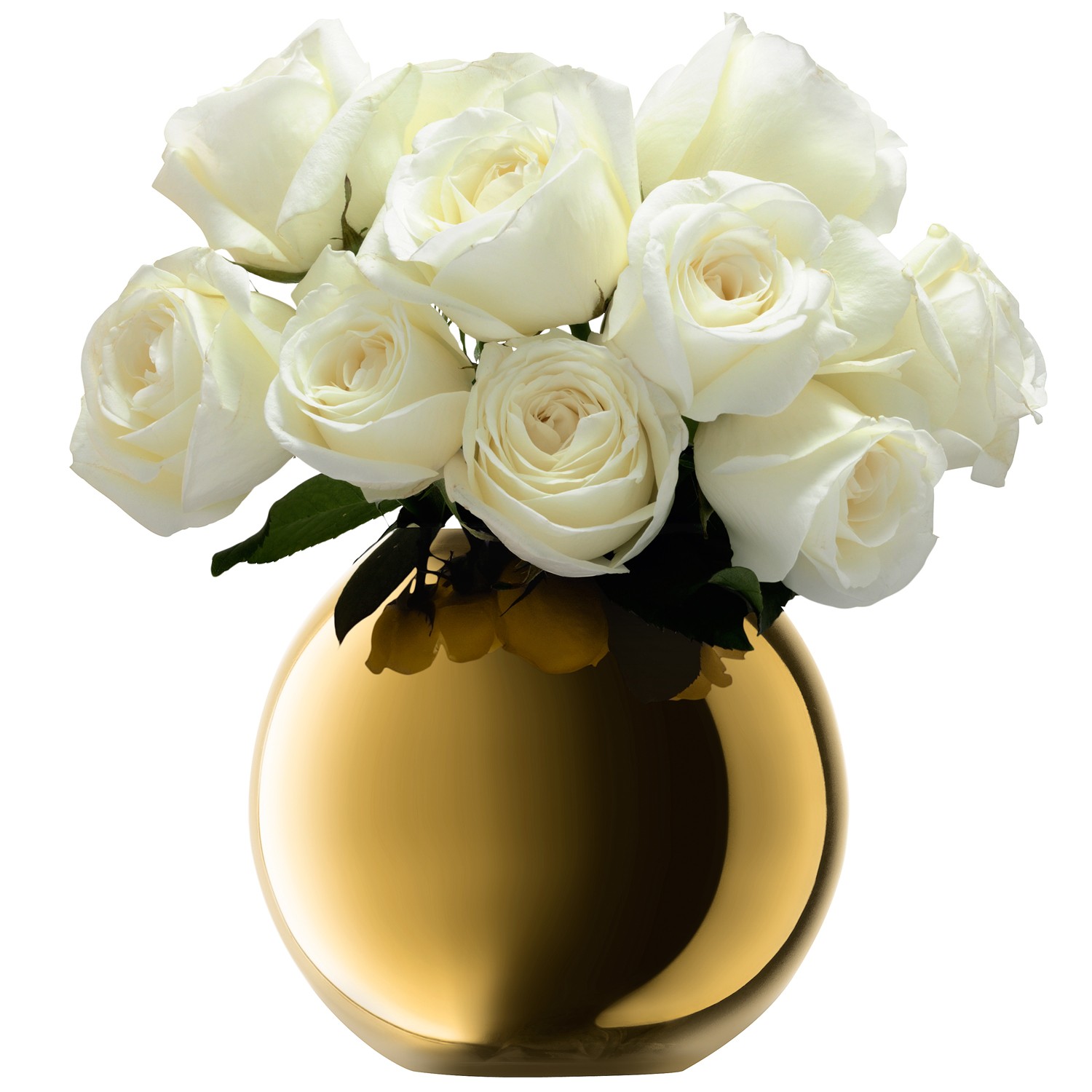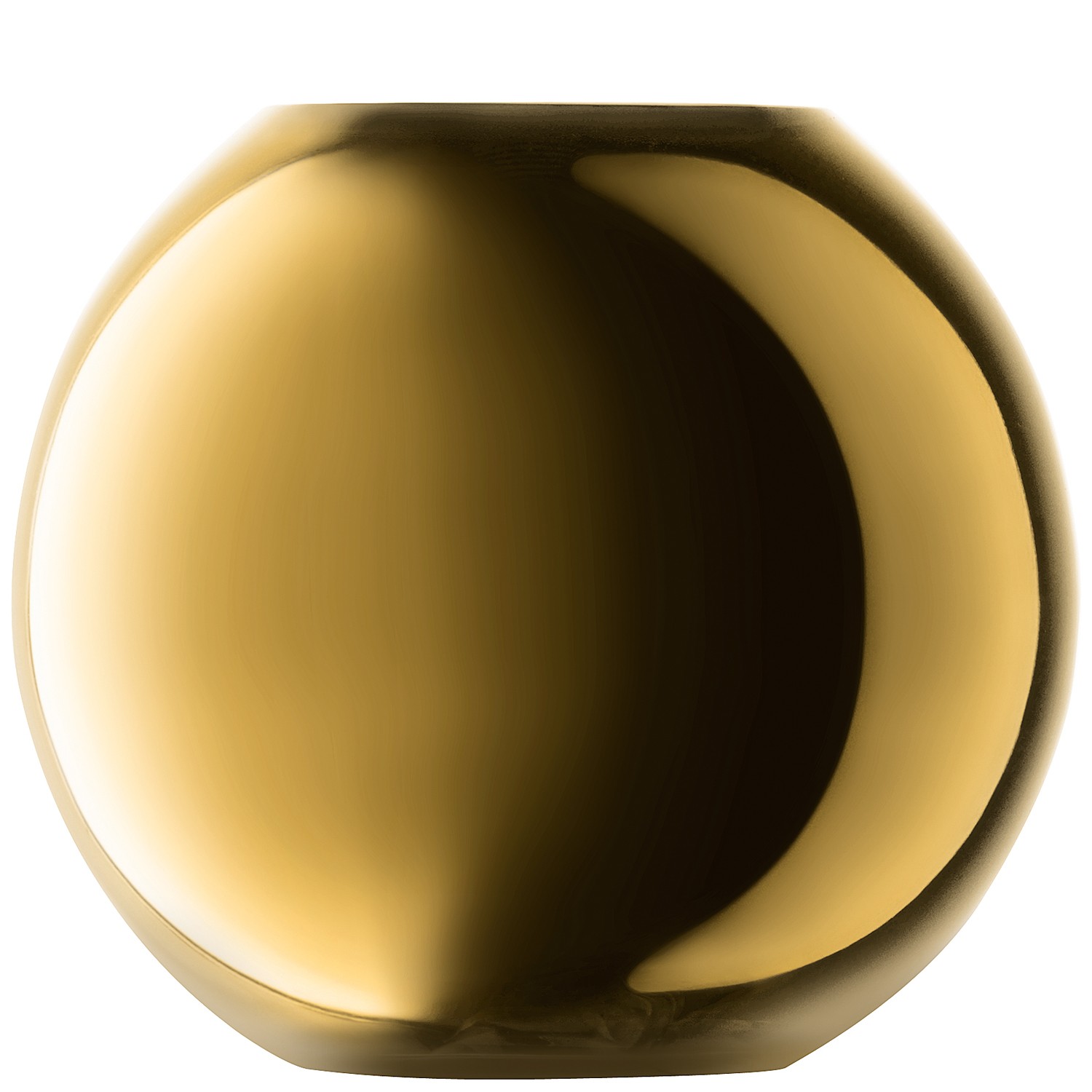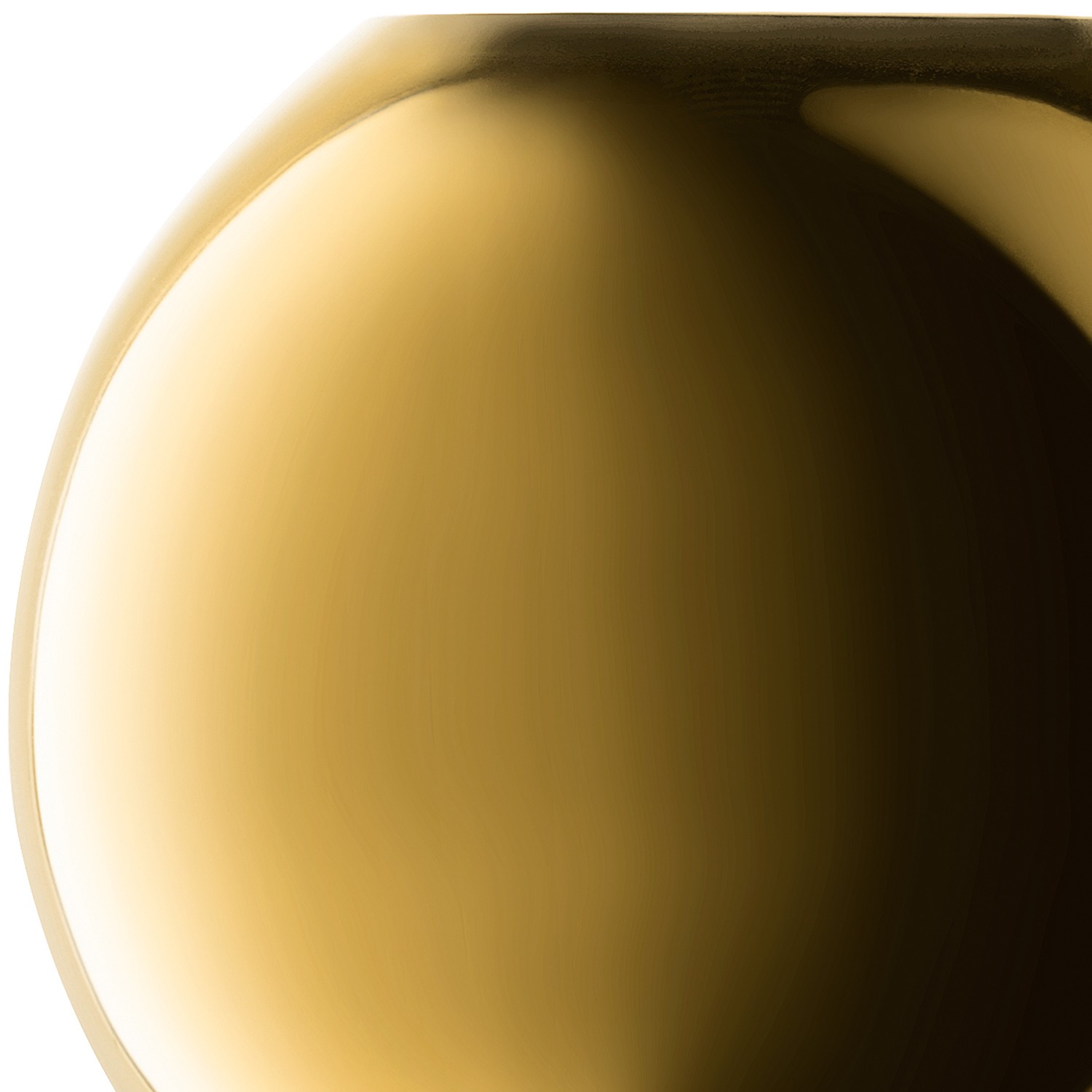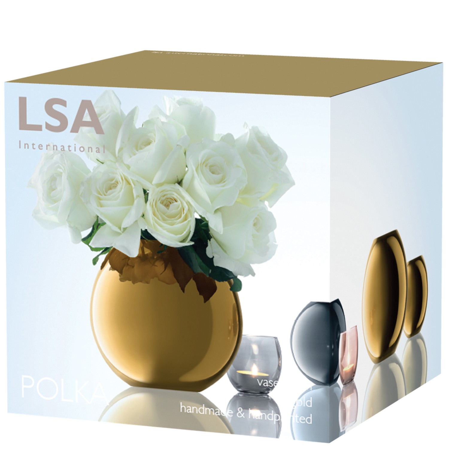 Mouthblown by skilled artisans, this spherical vase is handpainted to create a reflective gold finish. The vases rounded profile contrasts with its flat, polished rim. Combine with other vases in the Polka collection to create your own colour story. Individually gift boxed.