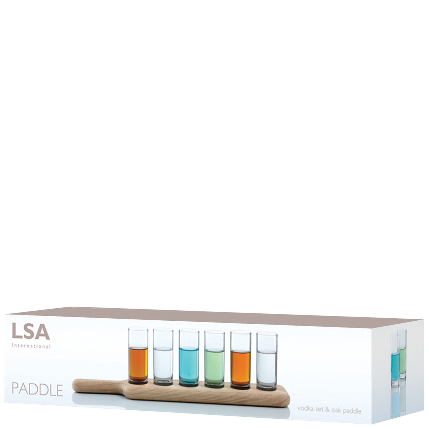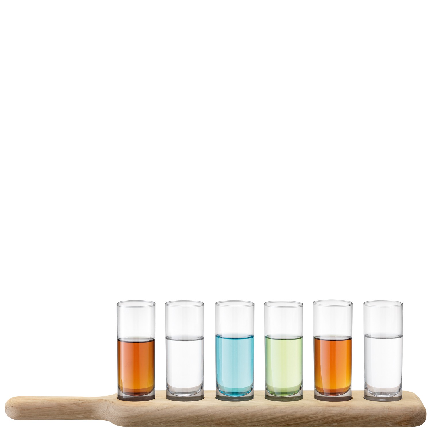 Inspired by mountain bars in the Tyrol, where shots of home-brewed schnapps are offered from person to person on specially-crafted wooden trays, this vodka set is designed to add an extra element of fun and style to social occasions. The hand-finished oak board creates a relaxed and organic feel, whilst securely nestling the vodka glasses for serving. Presented in gift packaging.