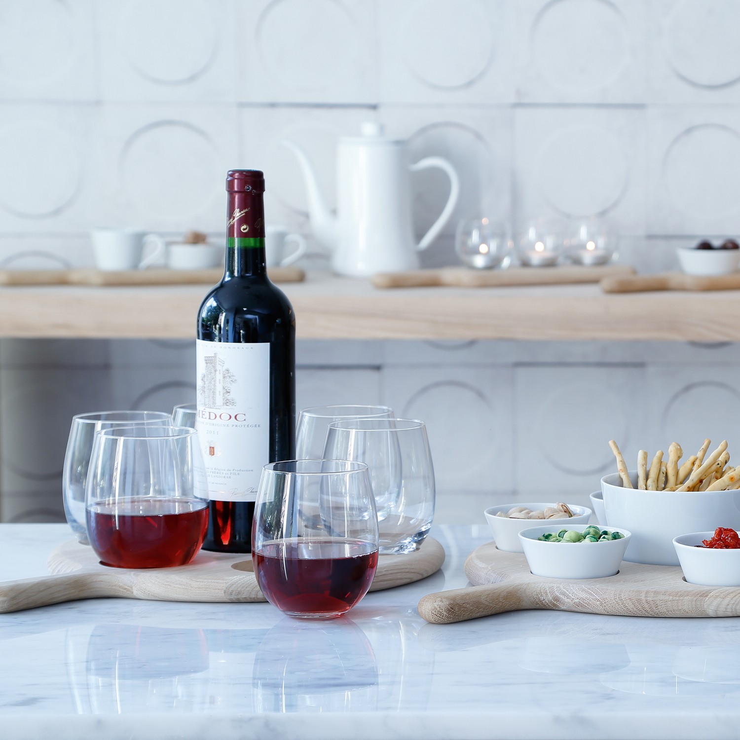 Our Paddle collection is inspired by mountain bars in the Tyrol, where shots of home-brewed schnapps are offered from person to person on specially-crafted wooden trays. Designed for relaxed, social occasions, Paddle features hand-finished oak boards to add style whilst securely nestling glasses and bowls for serving. Each set is individually gift-boxed, creating stylish presents.