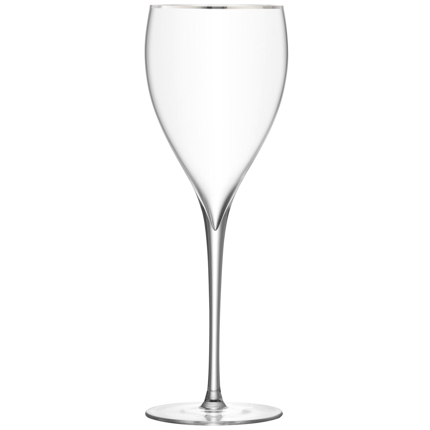 A hand-painted platinum rim gives these fine-stemmed handmade Savoy glasses an air of luxurious elegance. Luxuriously gift-boxed.